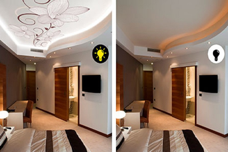 Потолочное покрытие актуально для любого помещения, главное – правильно выбрать конфигурацию системы, места прокладки ленты или установки светильников.