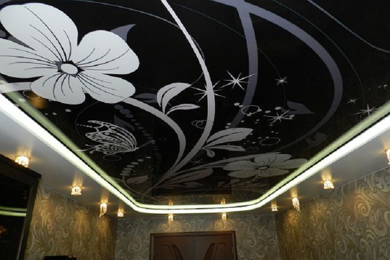 Цены на глянцевые полотна, независимо от их оттенка, одинаковы. Цена готового потолка зависит от его конфигурации, площади комнаты, количества и видов осветительных приборов, наличия дополнительного декора (прокладка светодиодной ленты, фотопечать и т. д.).