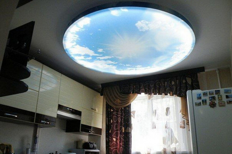 При выборе натяжного потолка с фотопечатью важно не только правильно его установить, но и «преподнести». Использование продуманного освещения позволяет акцентировать внимание на изображении, например, принт звездного неба, облаков с солнцем, освещенный подсветкой, будет выглядеть максимально реалистично.