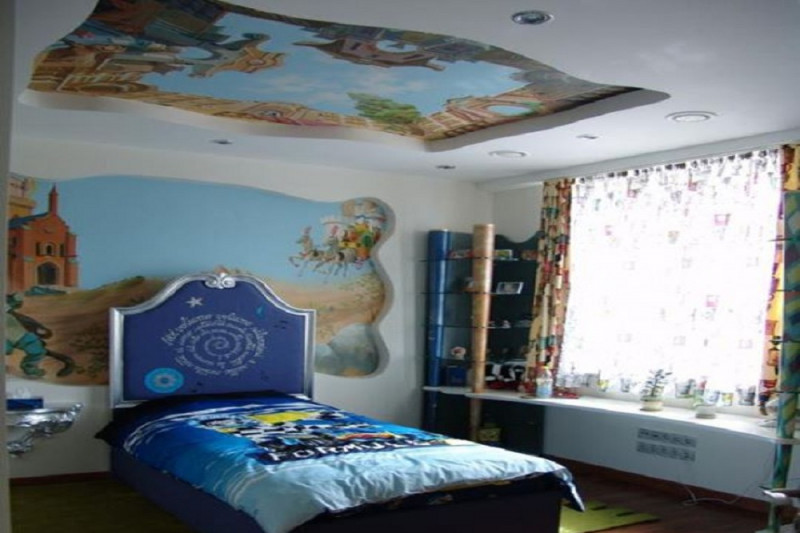 Изображение на натяжном потолке не выцветает. Для нанесения рисунка используются чернила, которые устойчивы к негативному воздействию ультрафиолета, поэтому яркая композиция на потолке будет вас радовать долгие годы.