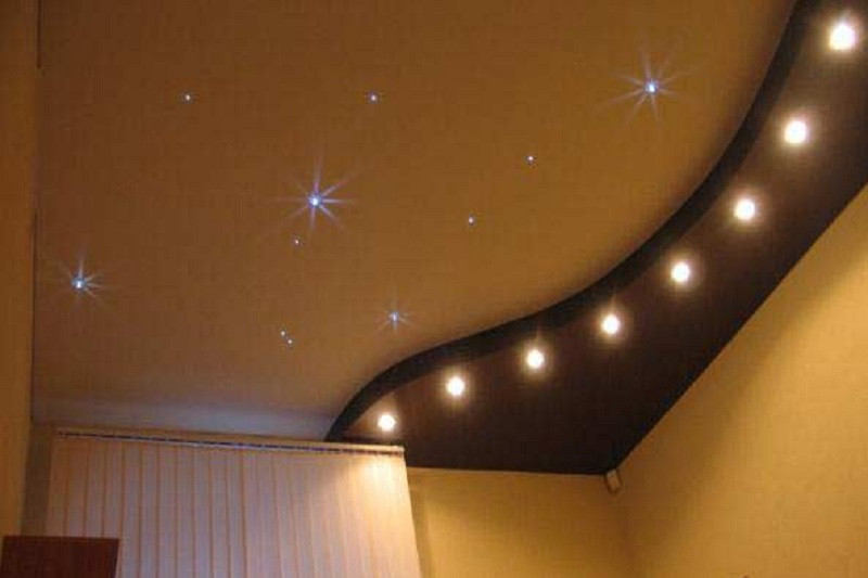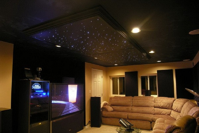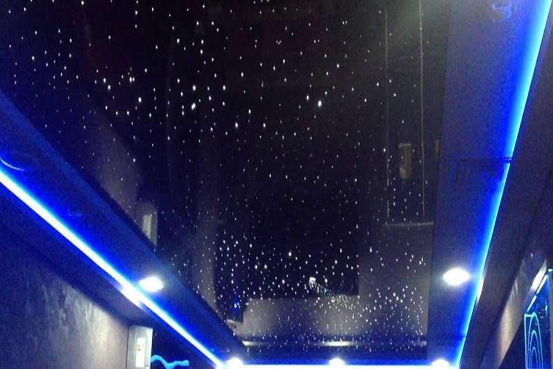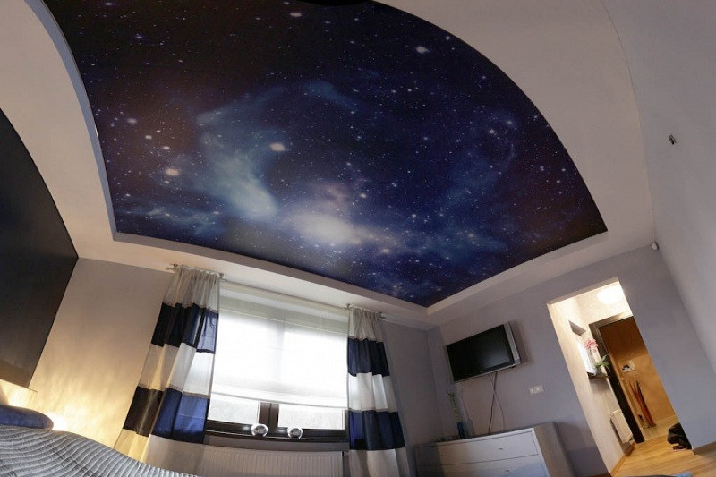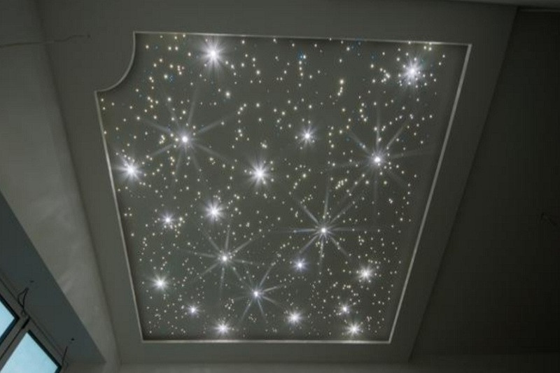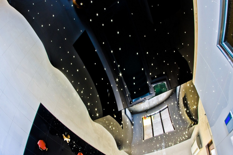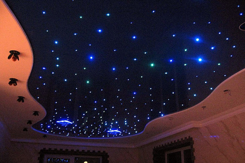 Натяжной потолок с имитацией звезд – одна из самых популярных конструкций, которая способна кардинально изменить пространство, превратив его в арт-объект. В компании «Делюкс» можно заказать «звездный» потолок любой конфигурации. Есть несколько вариантов создания конструкции: печать на ткани, ПВХ-пленке, прокладка за покрытием оптического полотна, фотопечать со светодиодами, рисунок, созданный с помощью люминесцентной подсветки. Перечисленные техники создания системы далеко не все, монтаж натяжных потолков «звездное небо» может сочетать несколько приемов декорирования.