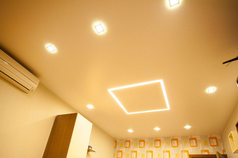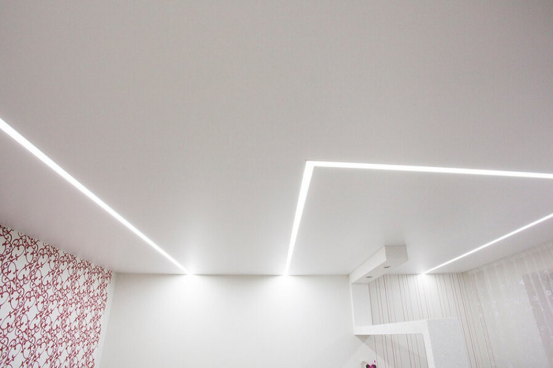 Потолочное покрытие актуально для любого помещения, главное – правильно выбрать конфигурацию системы, места прокладки ленты или установки светильников.