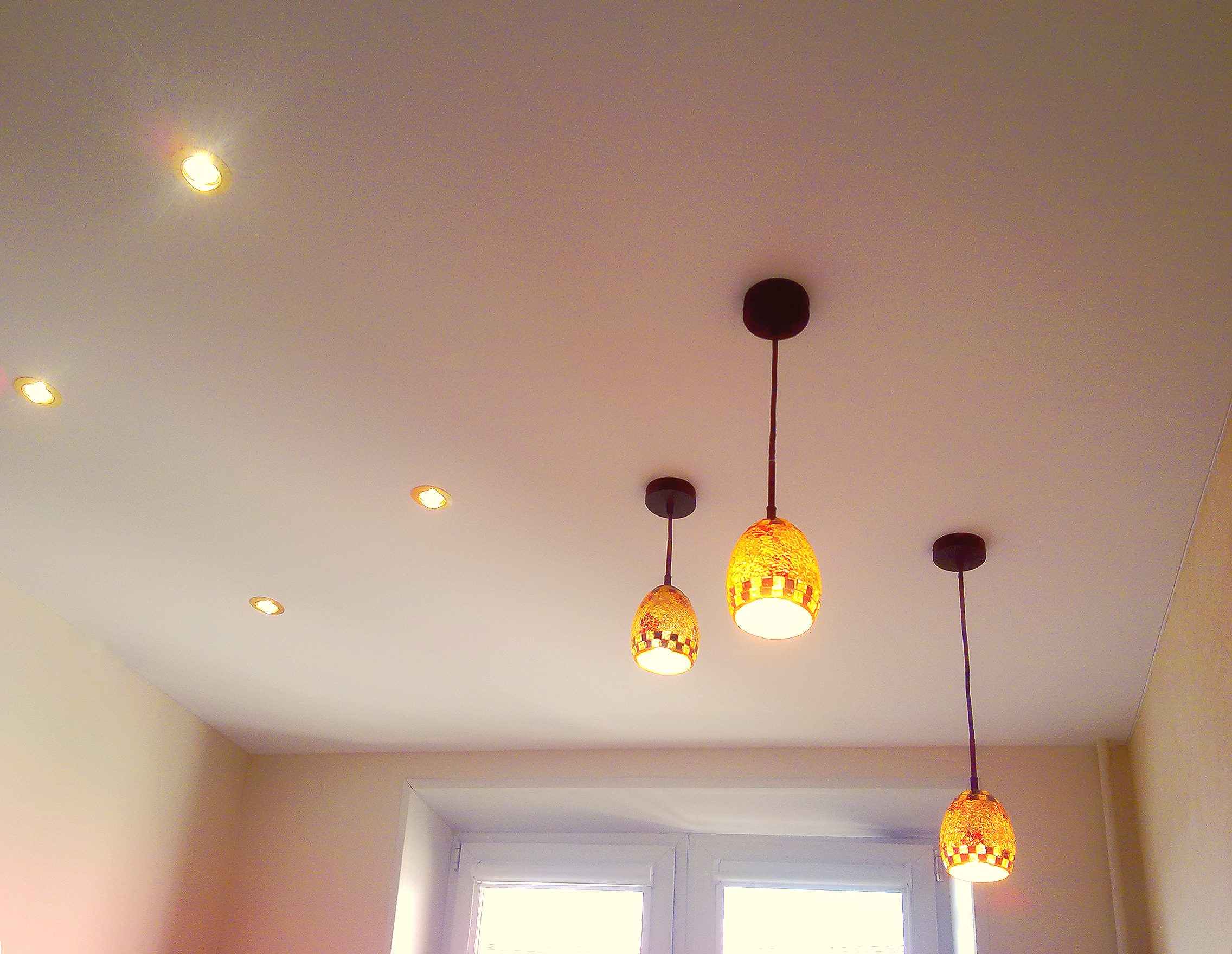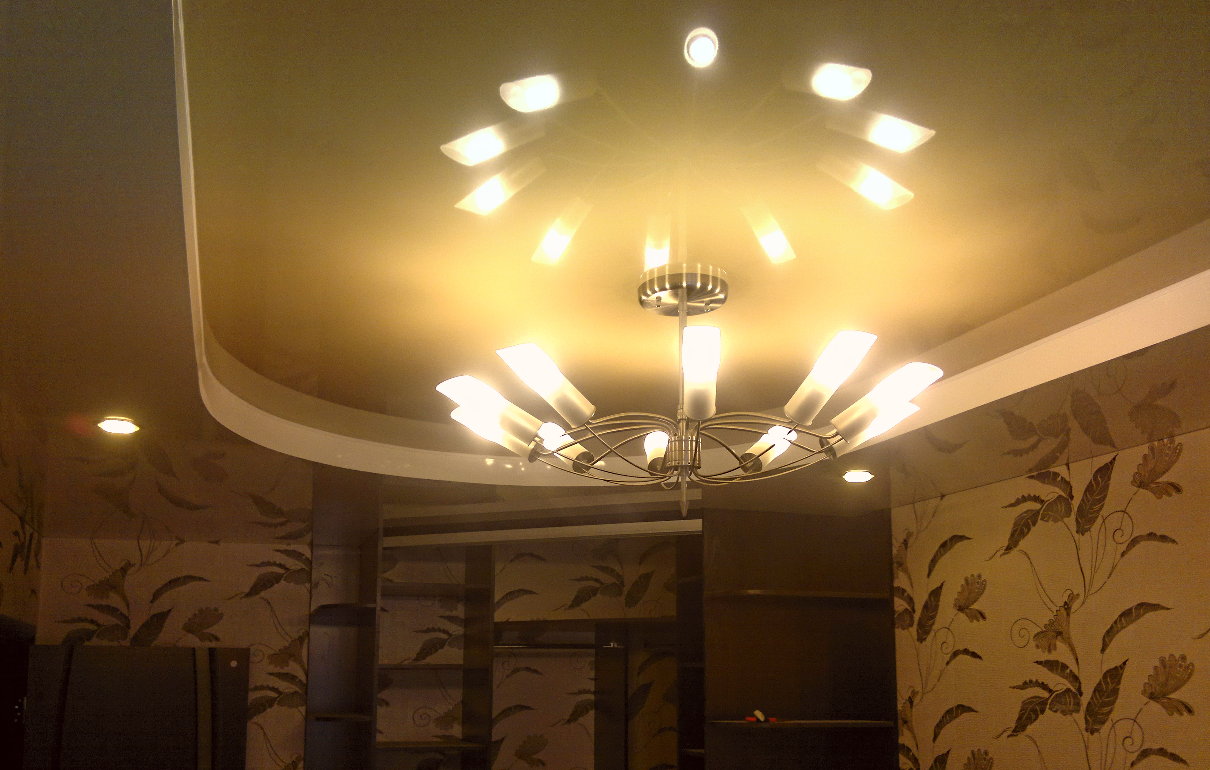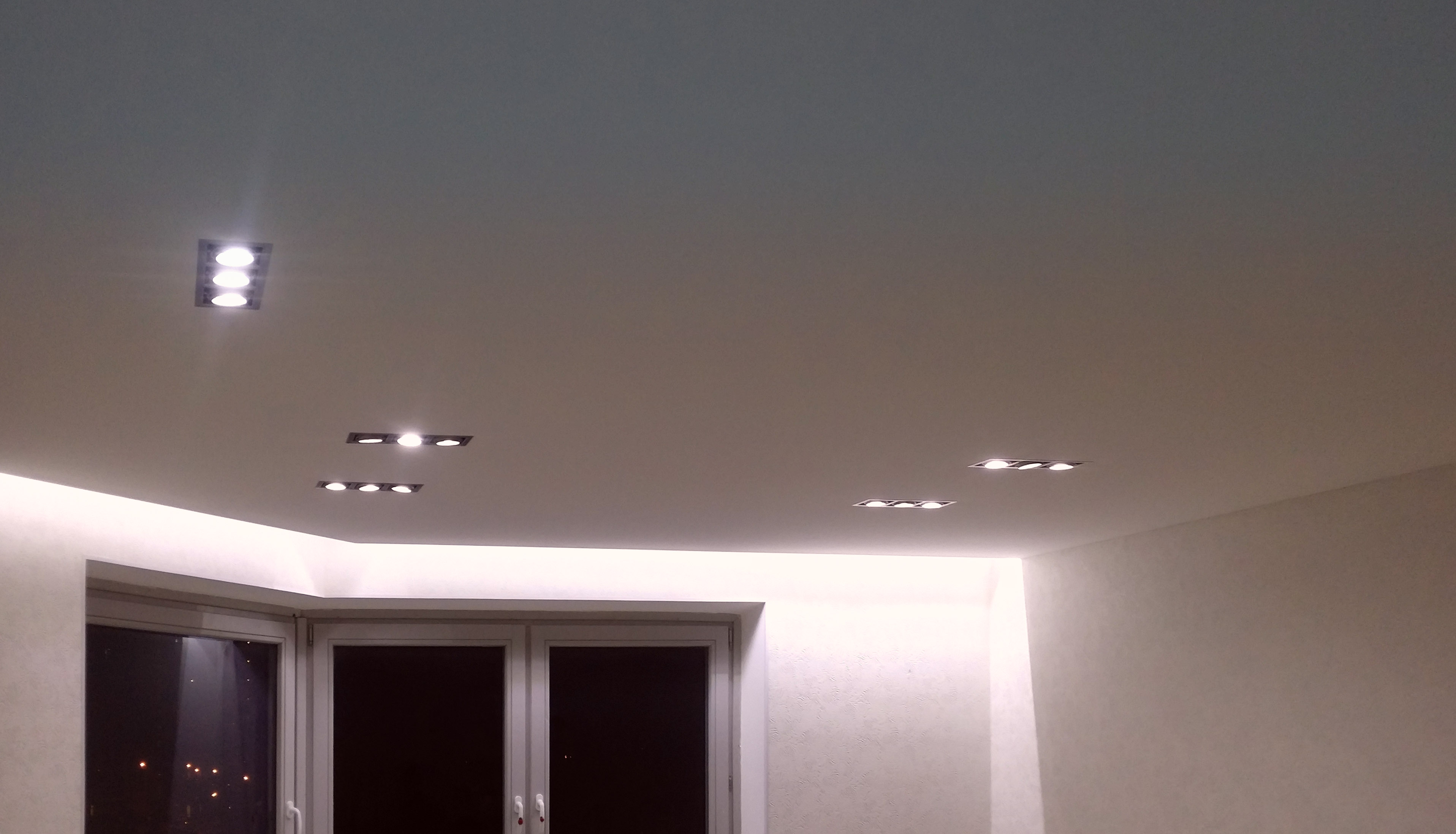 С какими осветительными приборами устанавливается сатиновый потолок?
