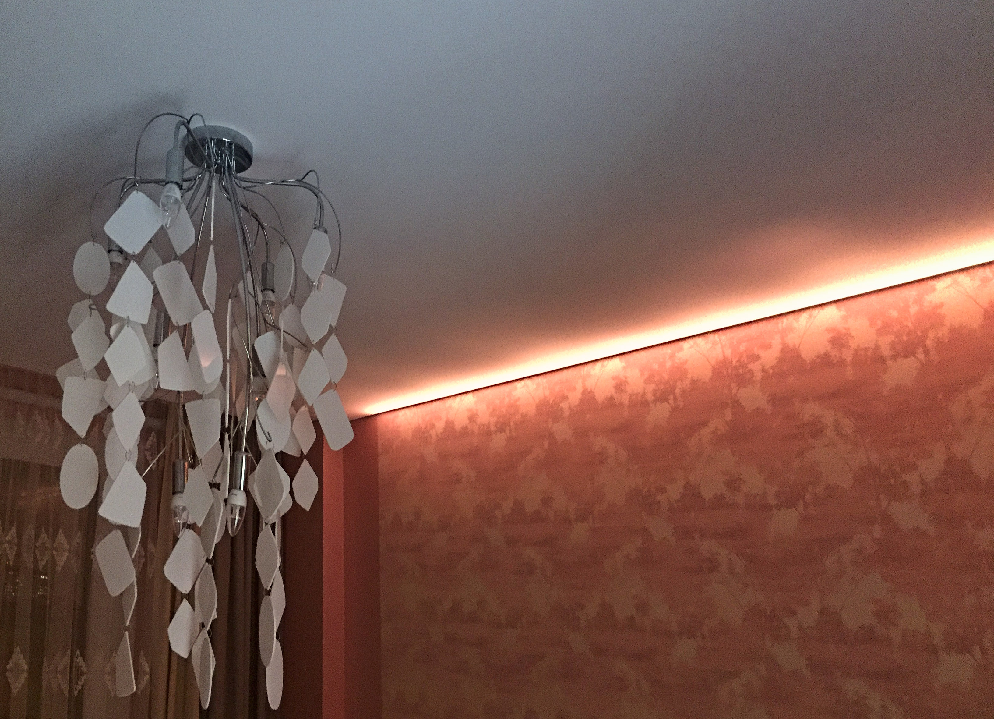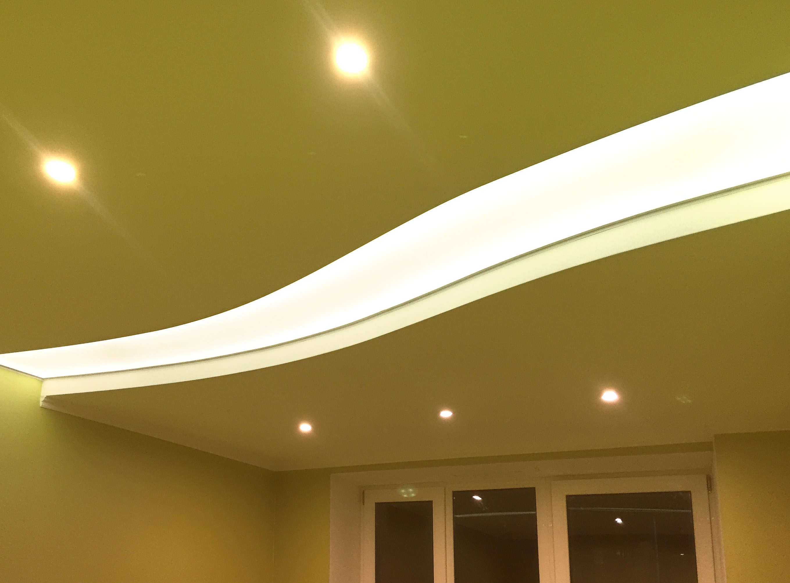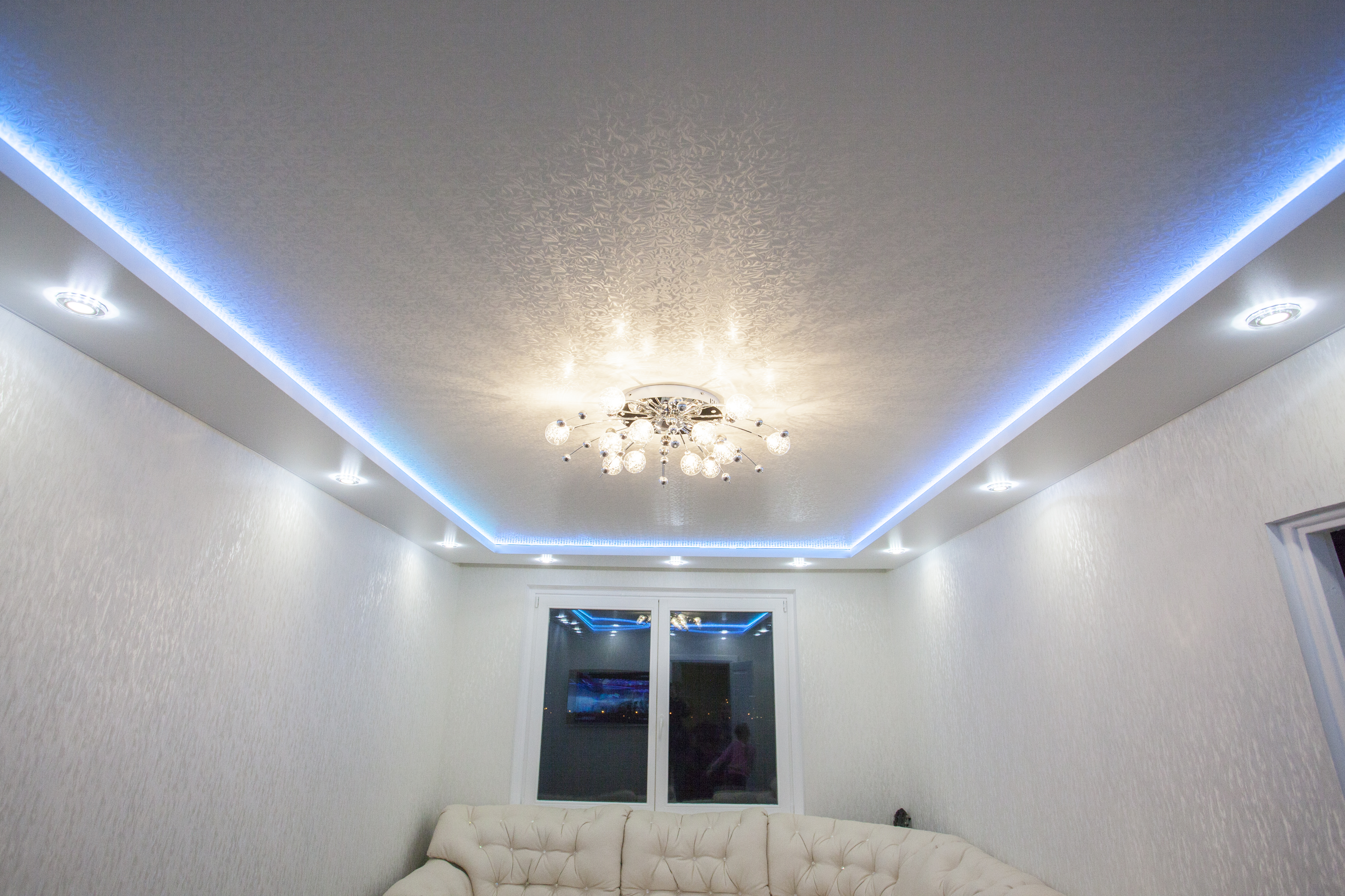 Потолочное покрытие актуально для любого помещения, главное – правильно выбрать конфигурацию системы, места прокладки ленты или установки светильников.
