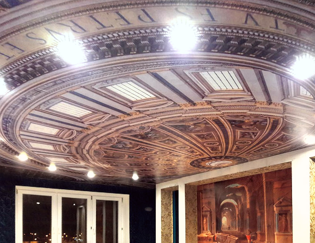 Изображение на натяжном потолке не выцветает. Для нанесения рисунка используются чернила, которые устойчивы к негативному воздействию ультрафиолета, поэтому яркая композиция на потолке будет вас радовать долгие годы.