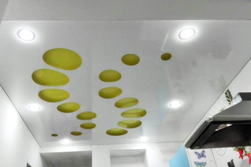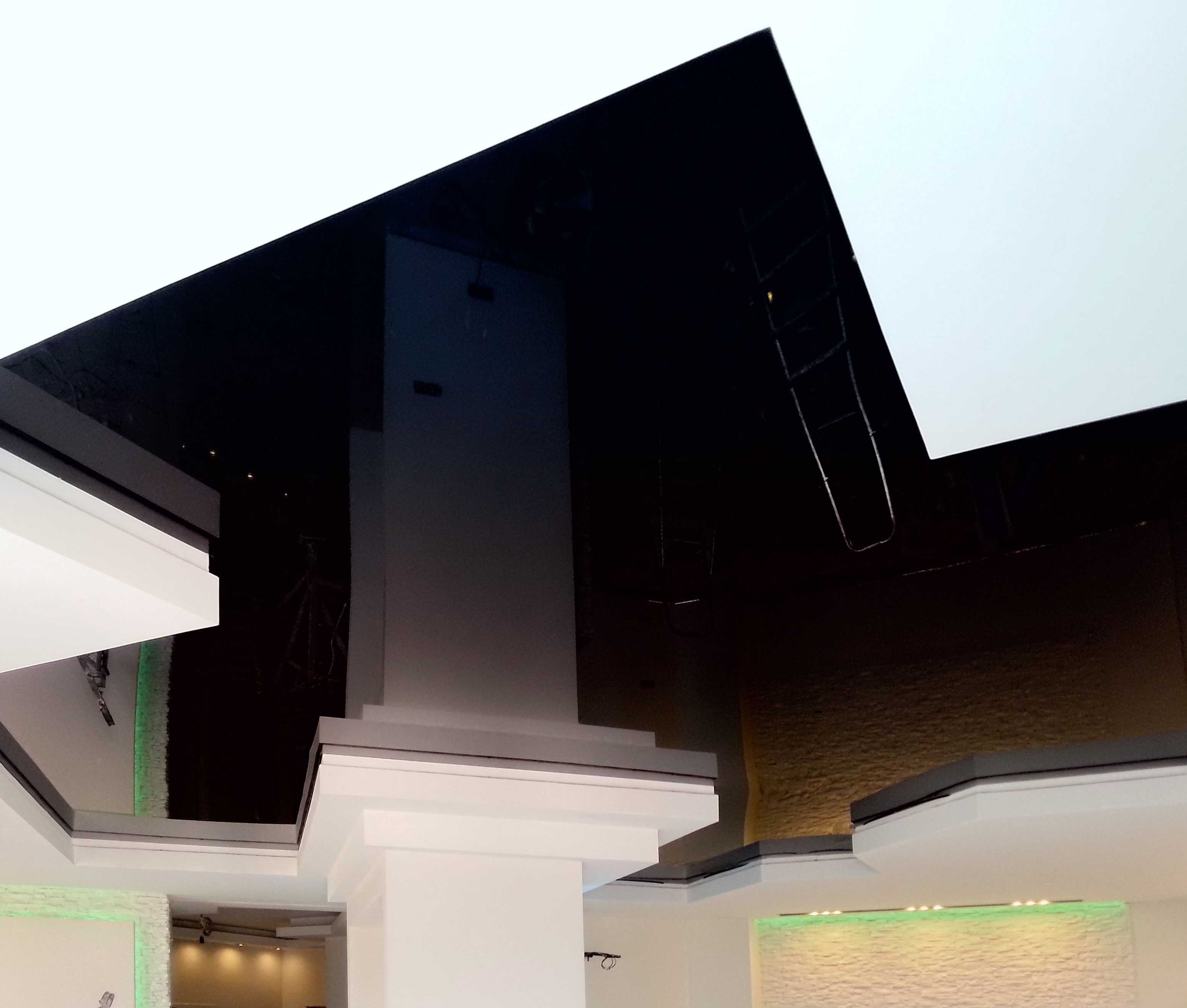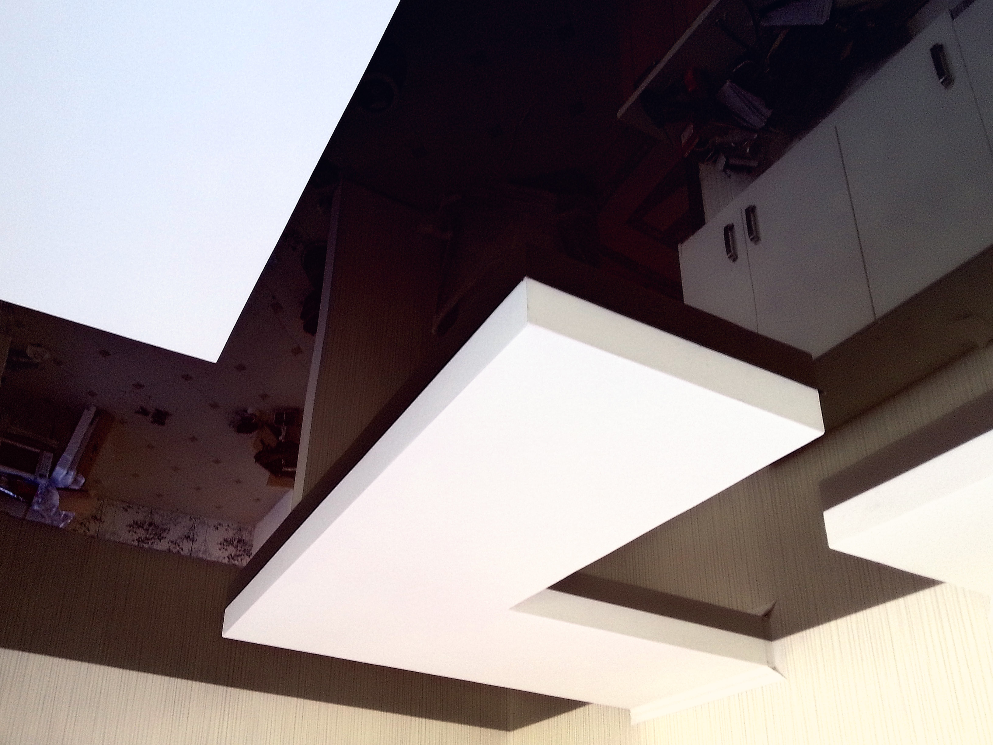 Цены на глянцевые полотна, независимо от их оттенка, одинаковы. Цена готового потолка зависит от его конфигурации, площади комнаты, количества и видов осветительных приборов, наличия дополнительного декора (прокладка светодиодной ленты, фотопечать и т. д.).