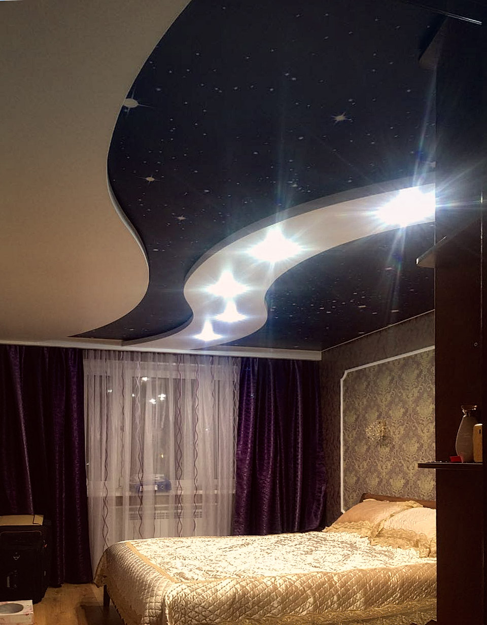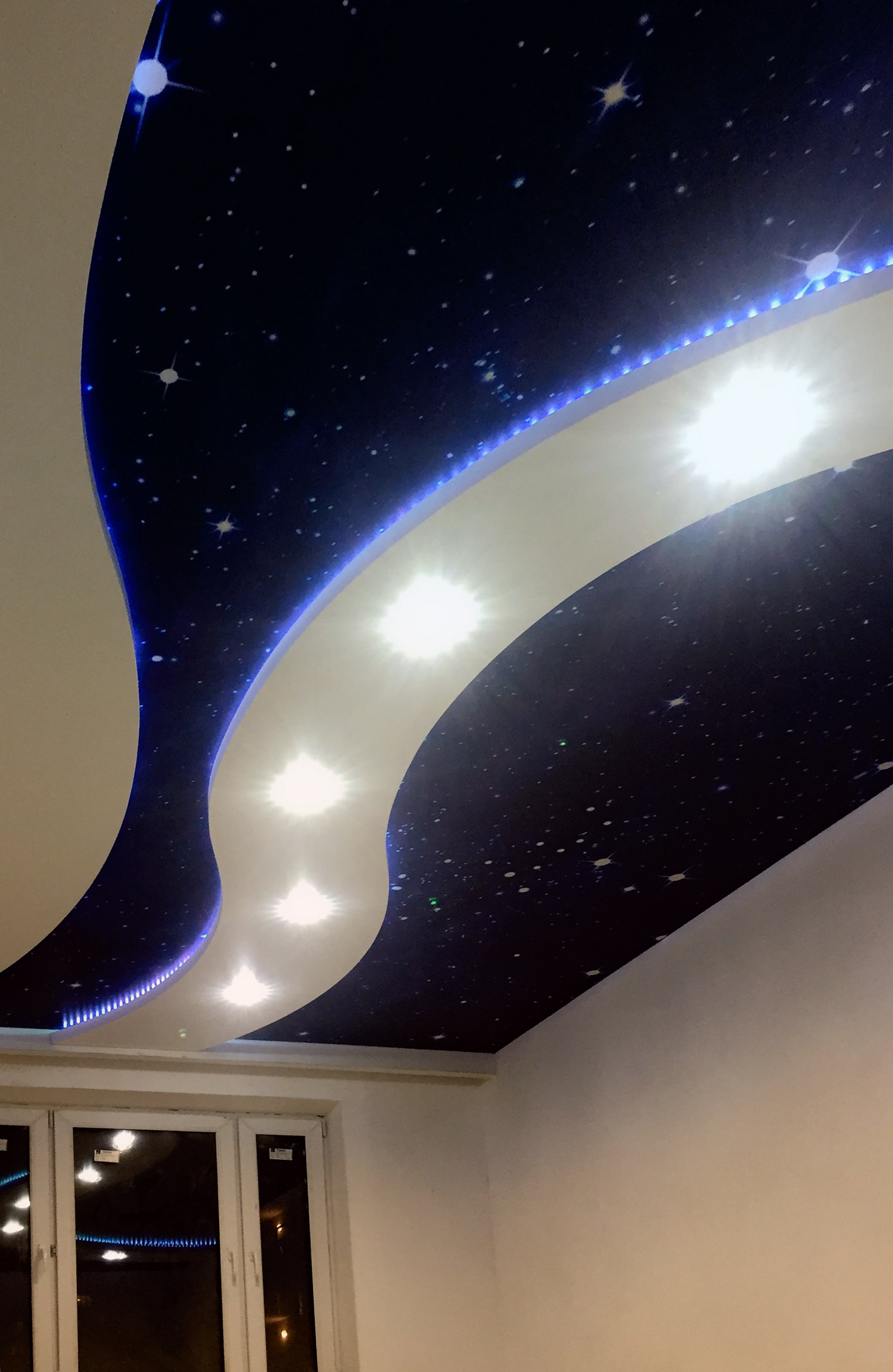 Возможен ли монтаж натяжного потолка в технике звездного неба в несколько уровней?
