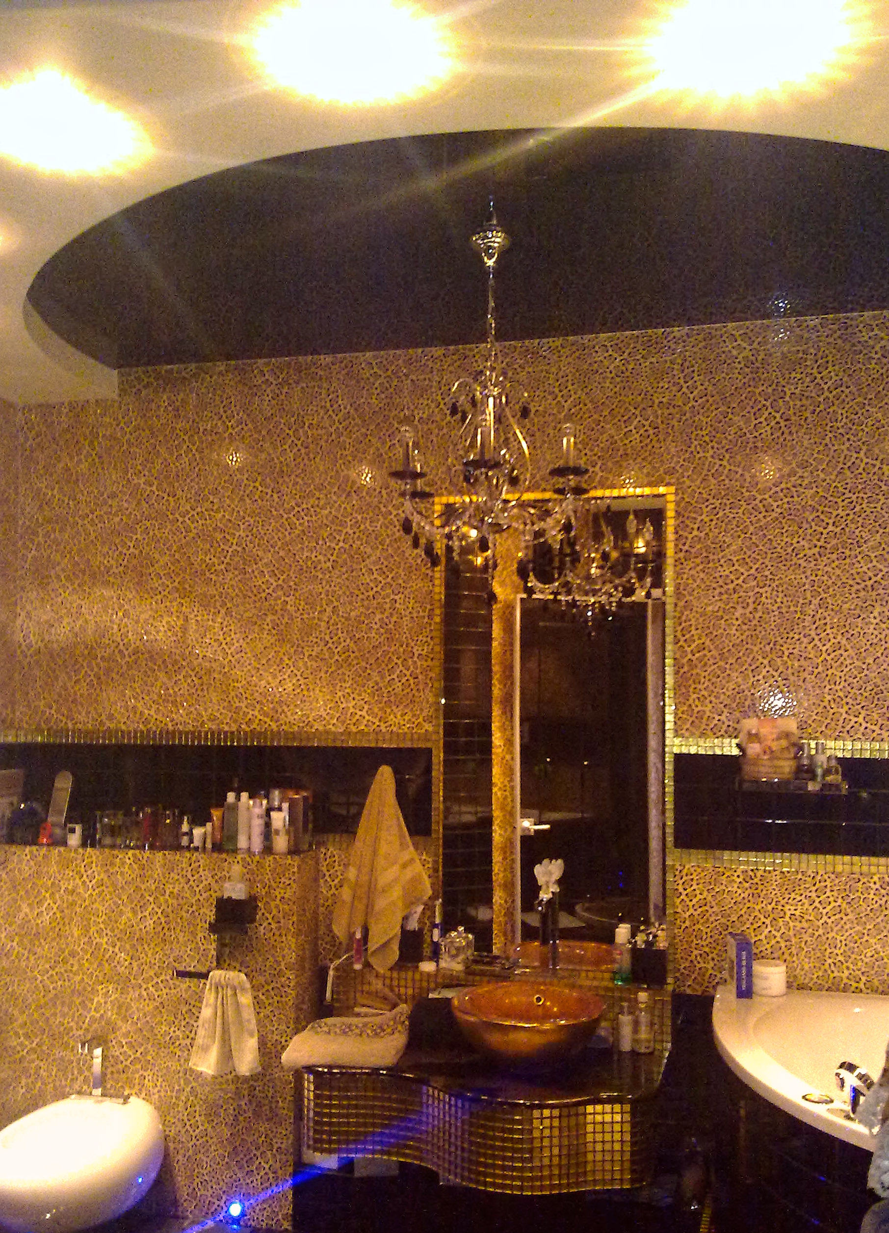 Для таких помещений мы подбираем осветительные приборы с высоким показателем устойчивости к влаге, поэтому потолки полностью безопасны.