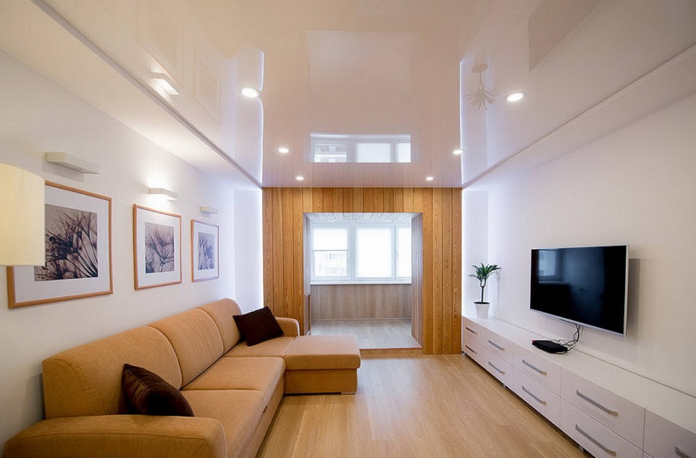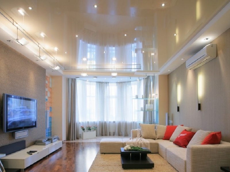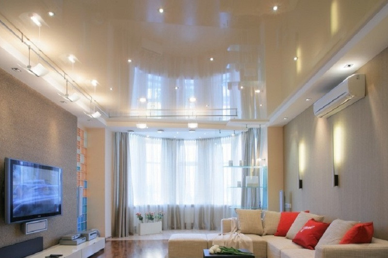 Помимо квадратуры помещения, нужно учитывать еще и уровень освещения. Если комната очень темная, то лучше отдать предпочтение светлым оттенкам, которые будут делать ее более уютной, глянец, в свою очередь, поможет решить проблемы с маленькой площадью, визуально ее увеличивая. Идеальный вариант – выбор белого глянцевого потолка. Для помещений с хорошим уровнем освещения можно выбирать покрытия любых оттенков, главное, учесть цветовую гамму интерьера.
