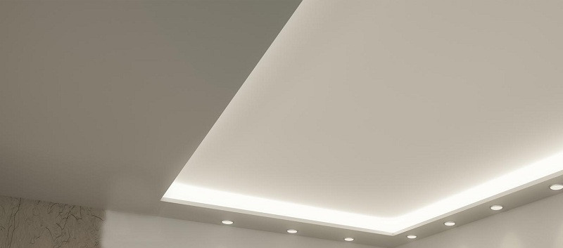 Потолочное покрытие актуально для любого помещения, главное – правильно выбрать конфигурацию системы, места прокладки ленты или установки светильников.