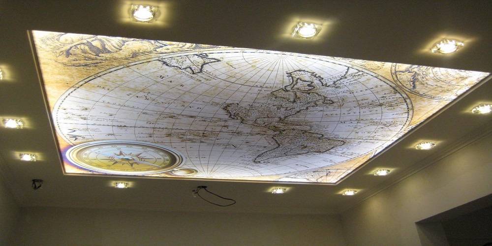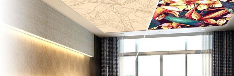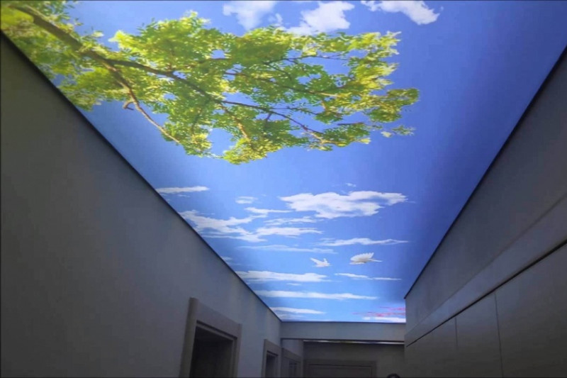 Изготовление потолка с фотопечатью подразумевает нанесение на полотно принта с помощью широкоформатного полноцветного принтера. В зависимости от выбранного вида натяжного потолка, может применяться технология УФ-печати или экосольвентной. Первый тип фотопечати подходит для полотен любого цвета, второй – только для материала светлых оттенков.