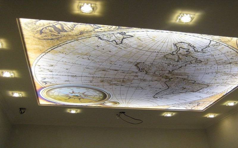 Изображение на натяжном потолке не выцветает. Для нанесения рисунка используются чернила, которые устойчивы к негативному воздействию ультрафиолета, поэтому яркая композиция на потолке будет вас радовать долгие годы.
