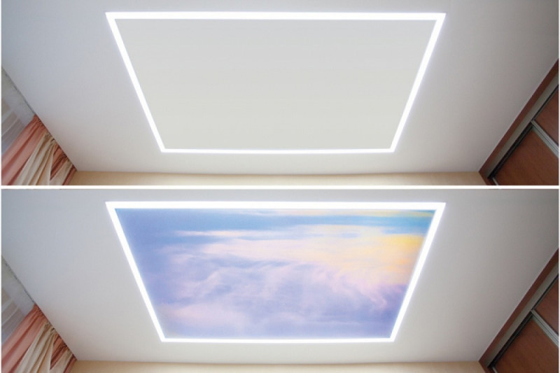 Потолочное покрытие актуально для любого помещения, главное – правильно выбрать конфигурацию системы, места прокладки ленты или установки светильников.