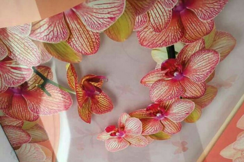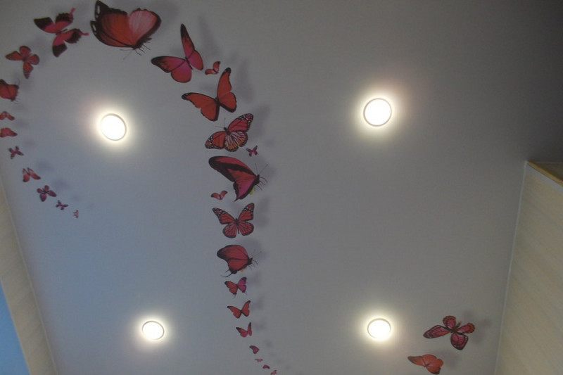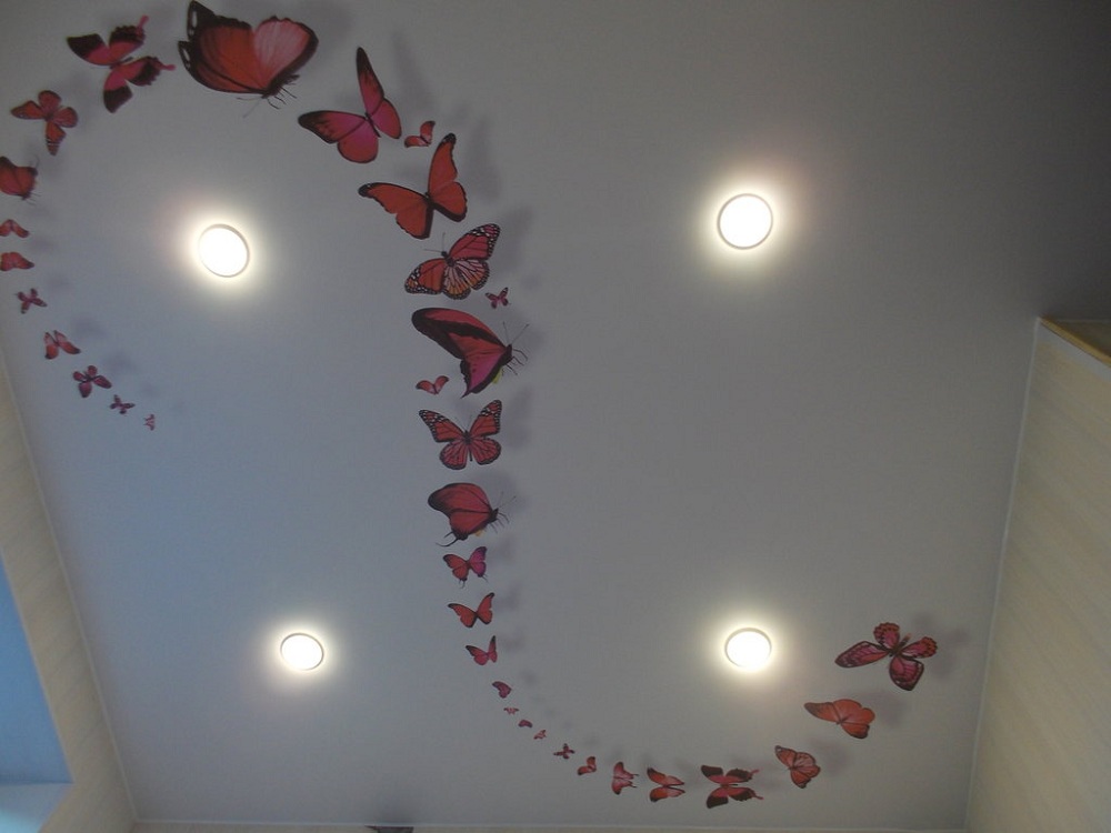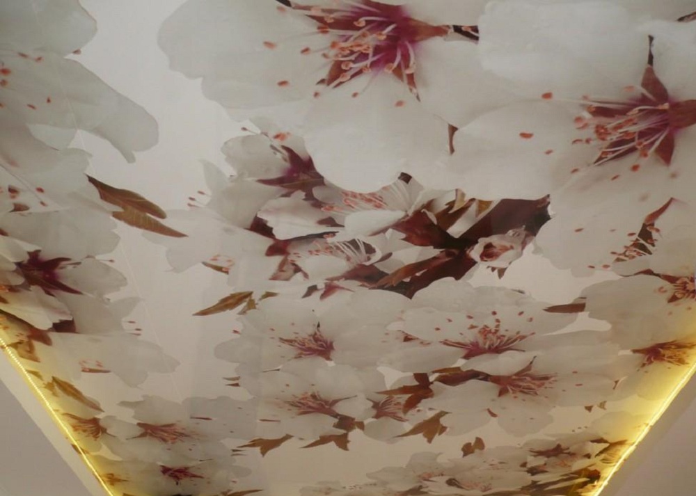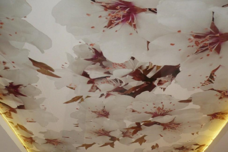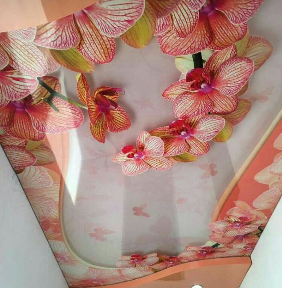 Изображение на натяжном потолке не выцветает. Для нанесения рисунка используются чернила, которые устойчивы к негативному воздействию ультрафиолета, поэтому яркая композиция на потолке будет вас радовать долгие годы.