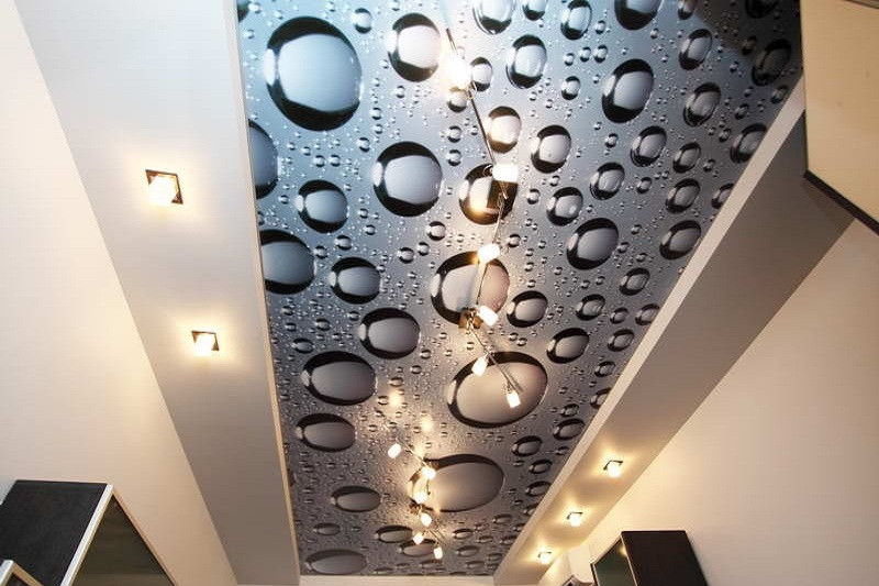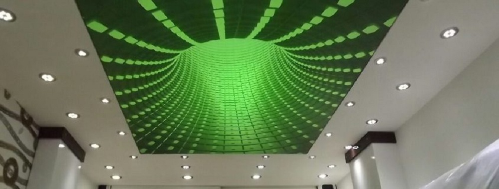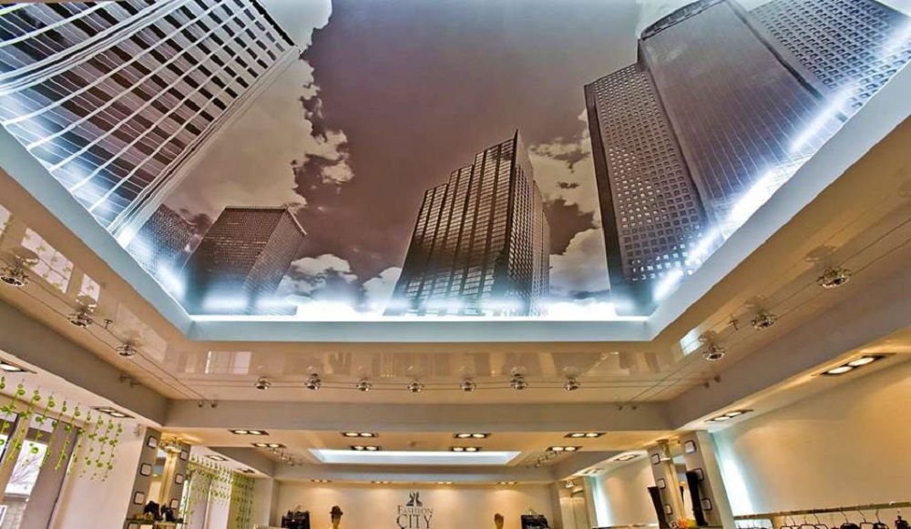 Изготовление потолка с фотопечатью подразумевает нанесение на полотно принта с помощью широкоформатного полноцветного принтера. В зависимости от выбранного вида натяжного потолка, может применяться технология УФ-печати или экосольвентной. Первый тип фотопечати подходит для полотен любого цвета, второй – только для материала светлых оттенков.