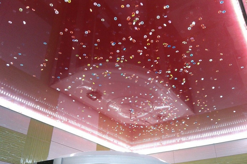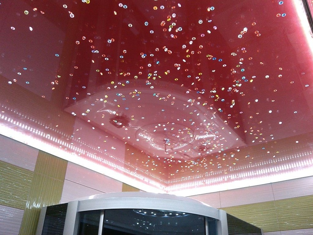 Цены на глянцевые полотна, независимо от их оттенка, одинаковы. Цена готового потолка зависит от его конфигурации, площади комнаты, количества и видов осветительных приборов, наличия дополнительного декора (прокладка светодиодной ленты, фотопечать и т. д.).