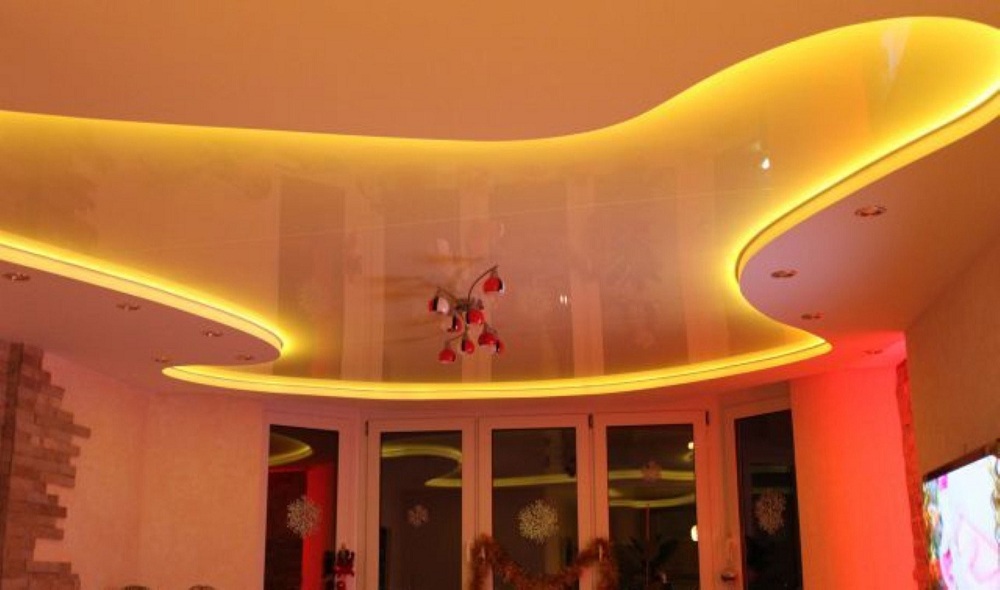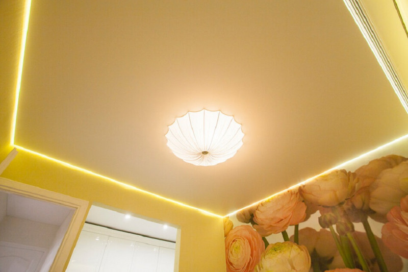 Мы используем светодиодную подсветку, которая создает мягкий рассеянный свет, равномерно распределенный по всей площади комнаты. Светильники и ленты на светодиодах потребляют минимум электроэнергии, отличаются высоким рабочим ресурсом, не нагреваются, что важно для потолка из ПВХ-пленки.