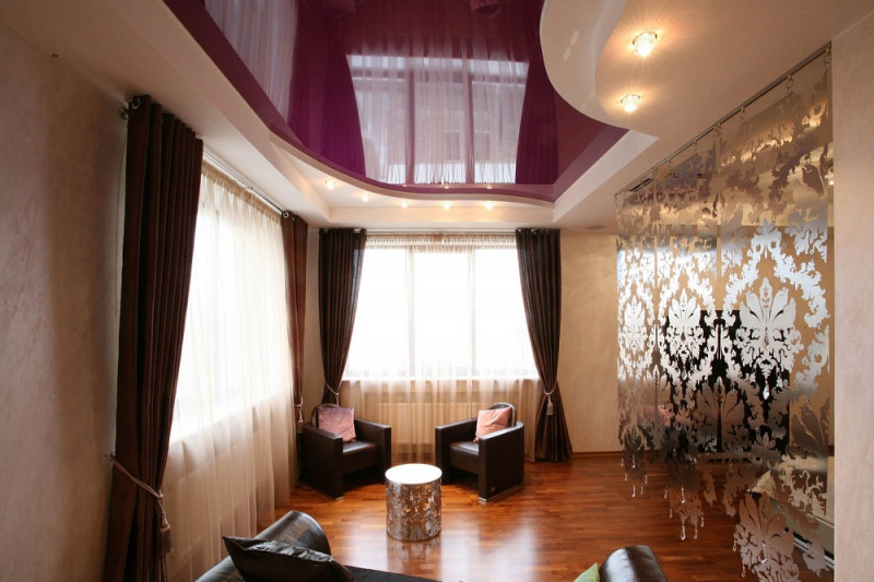 Помимо квадратуры помещения, нужно учитывать еще и уровень освещения. Если комната очень темная, то лучше отдать предпочтение светлым оттенкам, которые будут делать ее более уютной, глянец, в свою очередь, поможет решить проблемы с маленькой площадью, визуально ее увеличивая. Идеальный вариант – выбор белого глянцевого потолка. Для помещений с хорошим уровнем освещения можно выбирать покрытия любых оттенков, главное, учесть цветовую гамму интерьера.