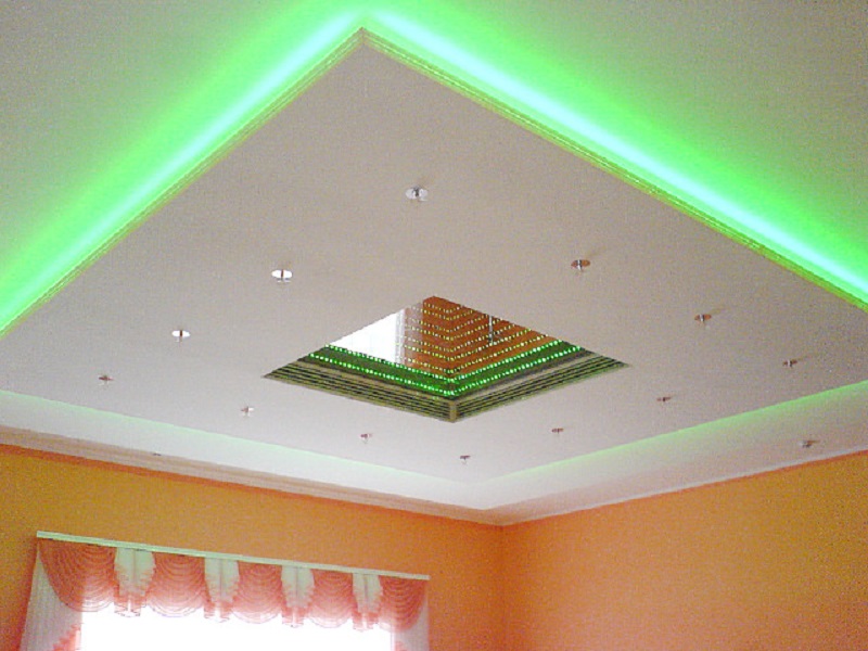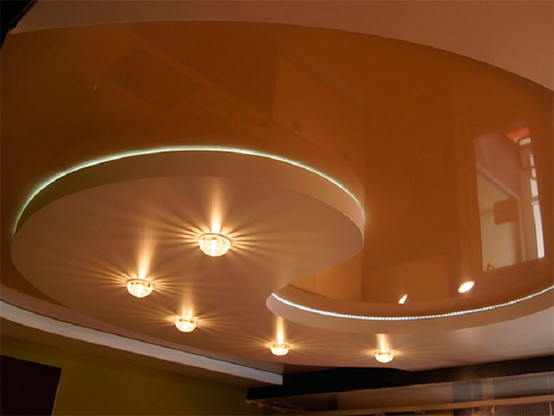 Потолочное покрытие актуально для любого помещения, главное – правильно выбрать конфигурацию системы, места прокладки ленты или установки светильников.