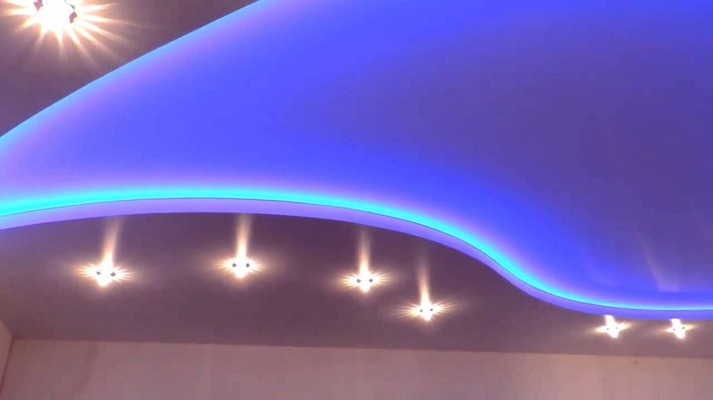 Потолочное покрытие актуально для любого помещения, главное – правильно выбрать конфигурацию системы, места прокладки ленты или установки светильников.