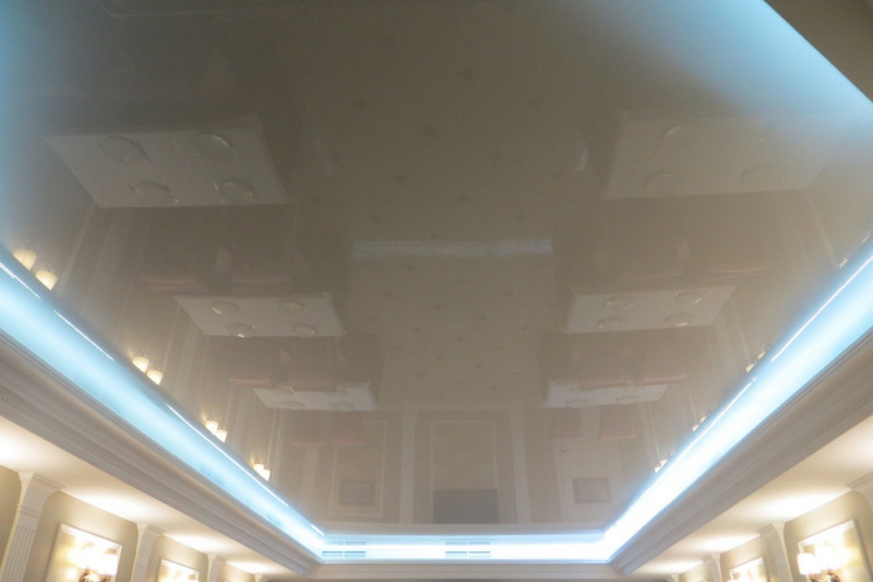 Цены на глянцевые полотна, независимо от их оттенка, одинаковы. Цена готового потолка зависит от его конфигурации, площади комнаты, количества и видов осветительных приборов, наличия дополнительного декора (прокладка светодиодной ленты, фотопечать и т. д.).