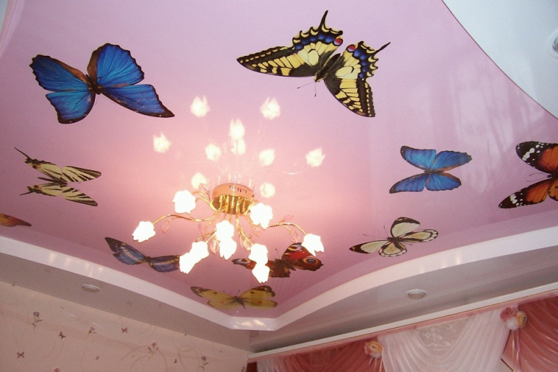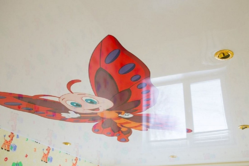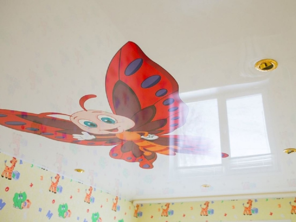 Изображение на натяжном потолке не выцветает. Для нанесения рисунка используются чернила, которые устойчивы к негативному воздействию ультрафиолета, поэтому яркая композиция на потолке будет вас радовать долгие годы.