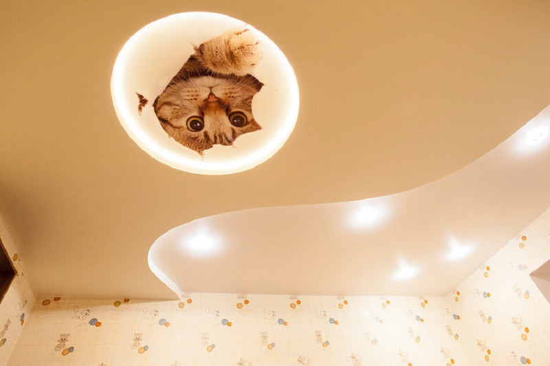 При выборе натяжного потолка с фотопечатью важно не только правильно его установить, но и «преподнести». Использование продуманного освещения позволяет акцентировать внимание на изображении, например, принт звездного неба, облаков с солнцем, освещенный подсветкой, будет выглядеть максимально реалистично.