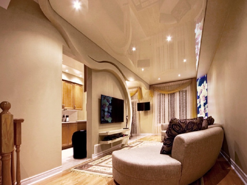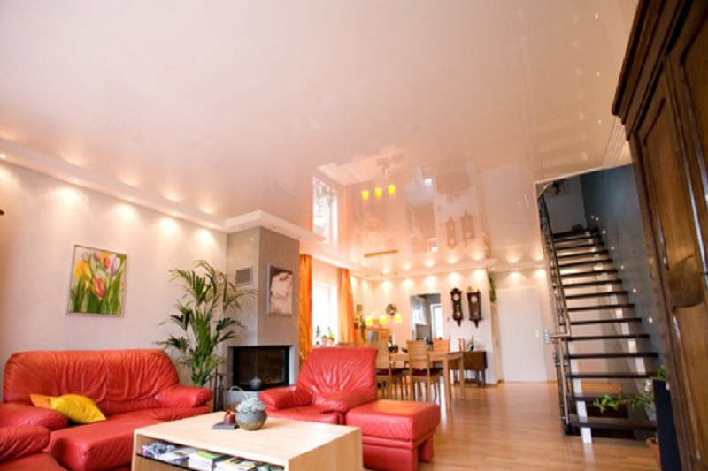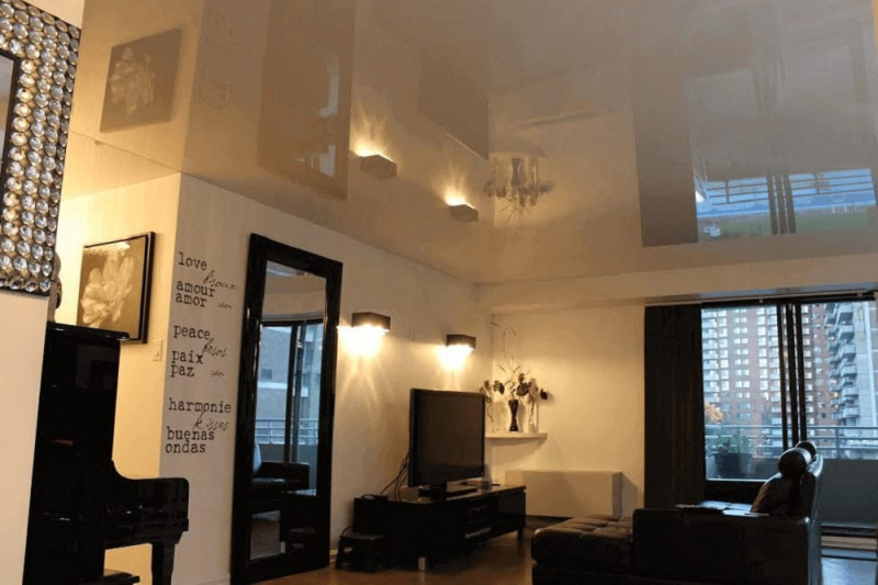 Помимо квадратуры помещения, нужно учитывать еще и уровень освещения. Если комната очень темная, то лучше отдать предпочтение светлым оттенкам, которые будут делать ее более уютной, глянец, в свою очередь, поможет решить проблемы с маленькой площадью, визуально ее увеличивая. Идеальный вариант – выбор белого глянцевого потолка. Для помещений с хорошим уровнем освещения можно выбирать покрытия любых оттенков, главное, учесть цветовую гамму интерьера.