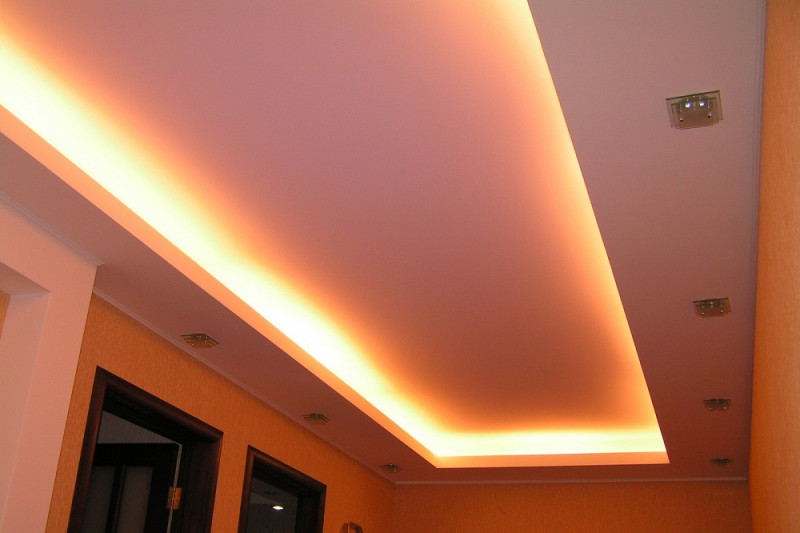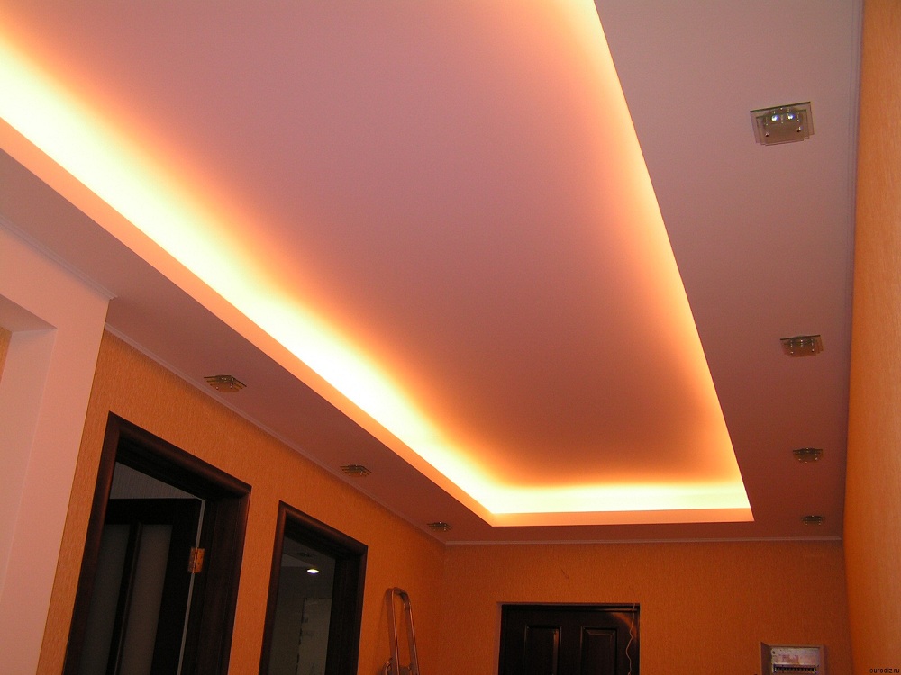 Потолочное покрытие актуально для любого помещения, главное – правильно выбрать конфигурацию системы, места прокладки ленты или установки светильников.