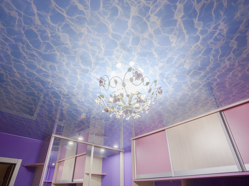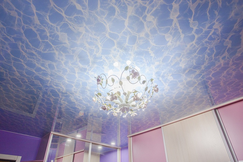 Изображение на натяжном потолке не выцветает. Для нанесения рисунка используются чернила, которые устойчивы к негативному воздействию ультрафиолета, поэтому яркая композиция на потолке будет вас радовать долгие годы.