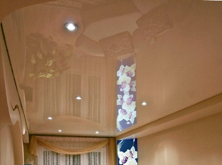 Изготовление потолка с фотопечатью подразумевает нанесение на полотно принта с помощью широкоформатного полноцветного принтера. В зависимости от выбранного вида натяжного потолка, может применяться технология УФ-печати или экосольвентной. Первый тип фотопечати подходит для полотен любого цвета, второй – только для материала светлых оттенков.