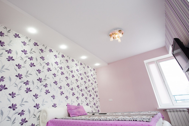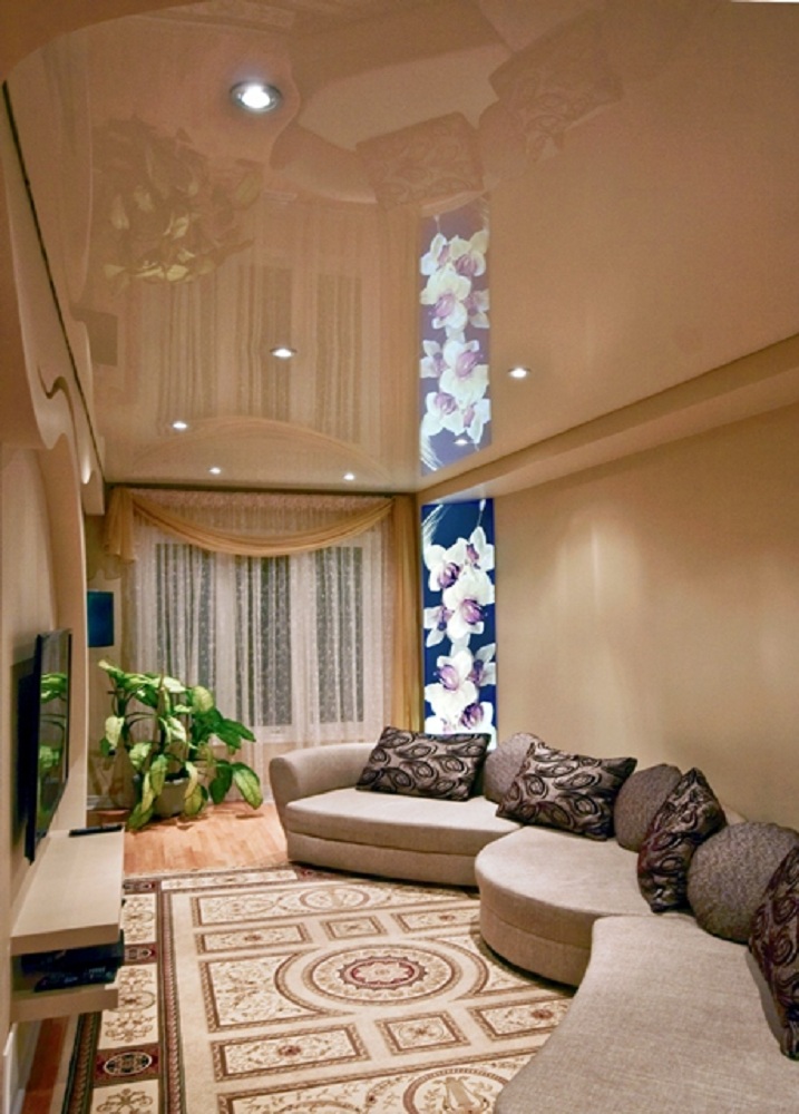 Помимо квадратуры помещения, нужно учитывать еще и уровень освещения. Если комната очень темная, то лучше отдать предпочтение светлым оттенкам, которые будут делать ее более уютной, глянец, в свою очередь, поможет решить проблемы с маленькой площадью, визуально ее увеличивая. Идеальный вариант – выбор белого глянцевого потолка. Для помещений с хорошим уровнем освещения можно выбирать покрытия любых оттенков, главное, учесть цветовую гамму интерьера.