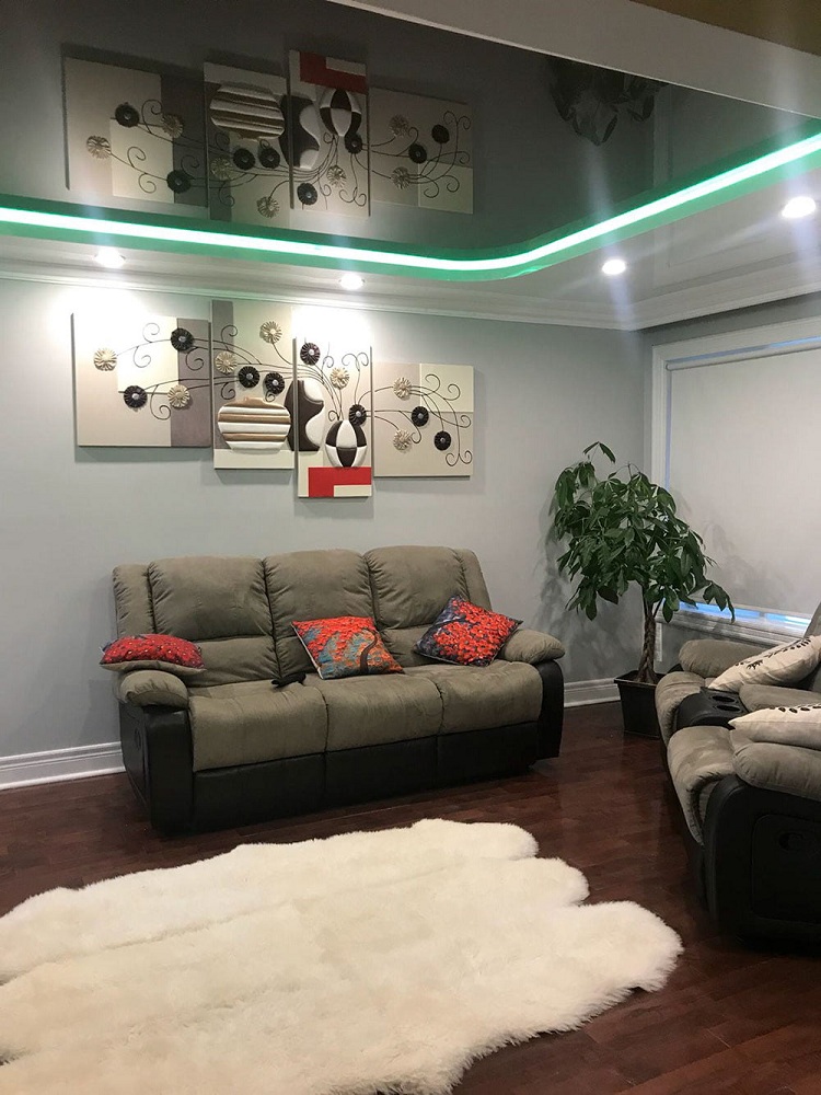 Особенность потолка с подсветкой – в визуальном увеличении пространства, создании эффекта невесомости конструкции, поэтому его можно установить в любой комнате. Если высота базового потолка небольшая, можно использовать одноуровневые системы.