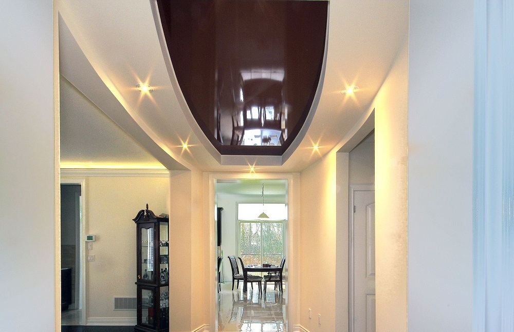 Помимо квадратуры помещения, нужно учитывать еще и уровень освещения. Если комната очень темная, то лучше отдать предпочтение светлым оттенкам, которые будут делать ее более уютной, глянец, в свою очередь, поможет решить проблемы с маленькой площадью, визуально ее увеличивая. Идеальный вариант – выбор белого глянцевого потолка. Для помещений с хорошим уровнем освещения можно выбирать покрытия любых оттенков, главное, учесть цветовую гамму интерьера.