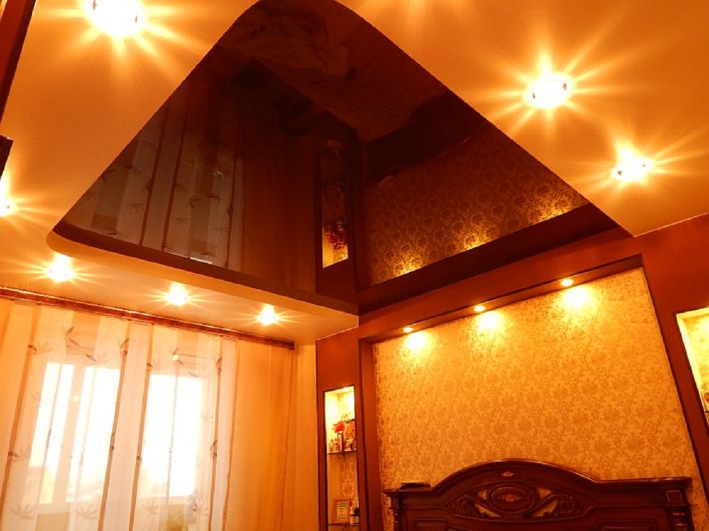 Помимо квадратуры помещения, нужно учитывать еще и уровень освещения. Если комната очень темная, то лучше отдать предпочтение светлым оттенкам, которые будут делать ее более уютной, глянец, в свою очередь, поможет решить проблемы с маленькой площадью, визуально ее увеличивая. Идеальный вариант – выбор белого глянцевого потолка. Для помещений с хорошим уровнем освещения можно выбирать покрытия любых оттенков, главное, учесть цветовую гамму интерьера.