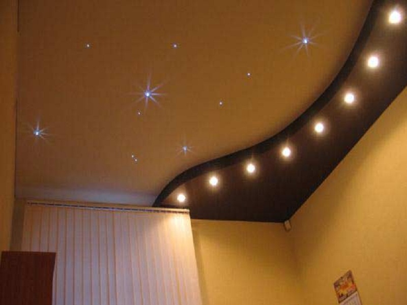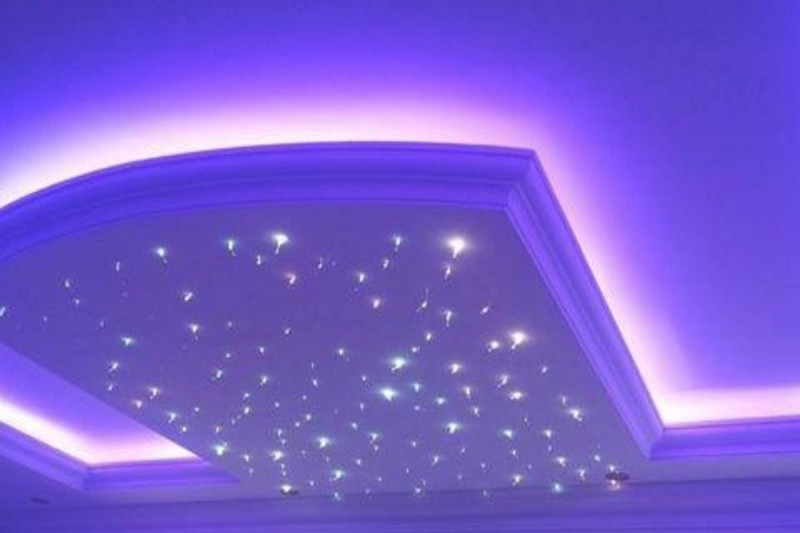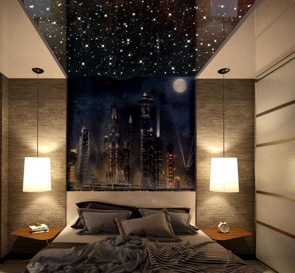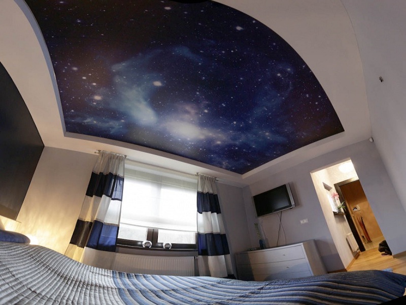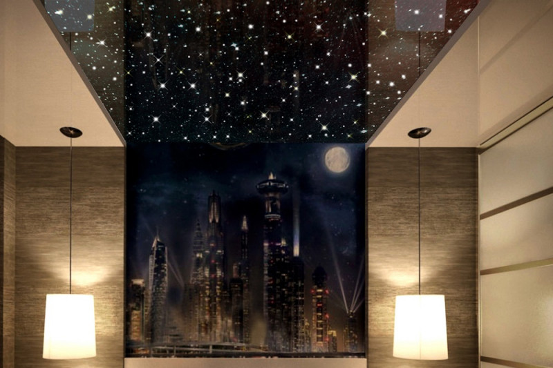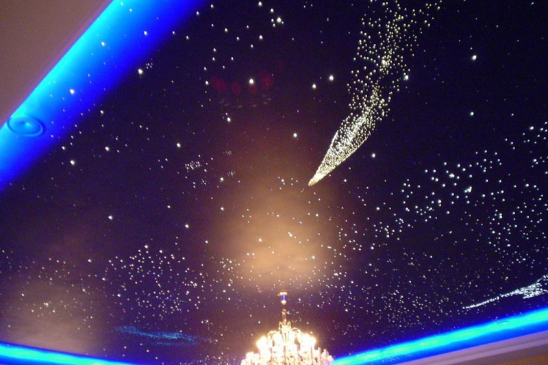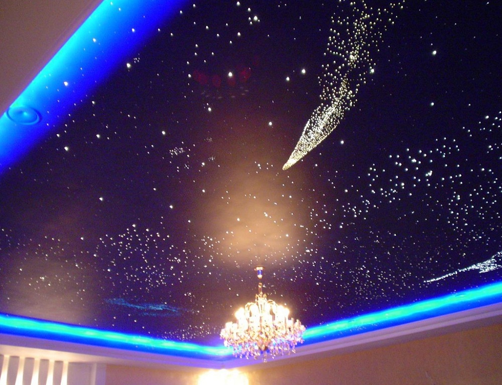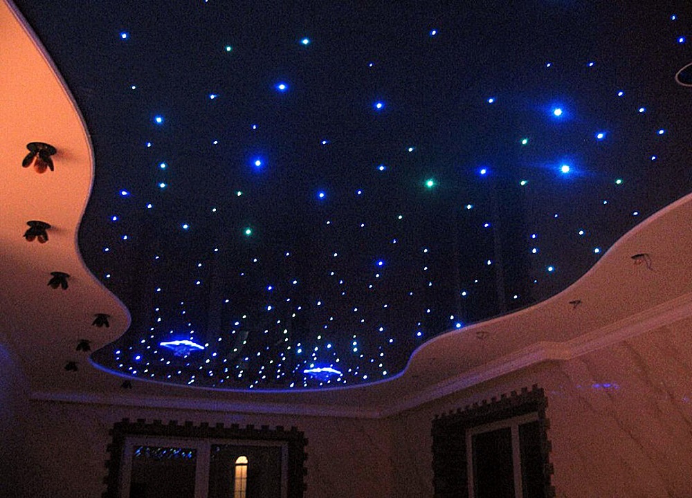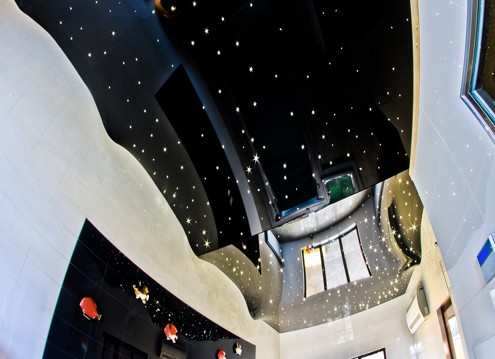 Натяжной потолок с имитацией звезд – одна из самых популярных конструкций, которая способна кардинально изменить пространство, превратив его в арт-объект. В компании «Делюкс» можно заказать «звездный» потолок любой конфигурации. Есть несколько вариантов создания конструкции: печать на ткани, ПВХ-пленке, прокладка за покрытием оптического полотна, фотопечать со светодиодами, рисунок, созданный с помощью люминесцентной подсветки. Перечисленные техники создания системы далеко не все, монтаж натяжных потолков «звездное небо» может сочетать несколько приемов декорирования.