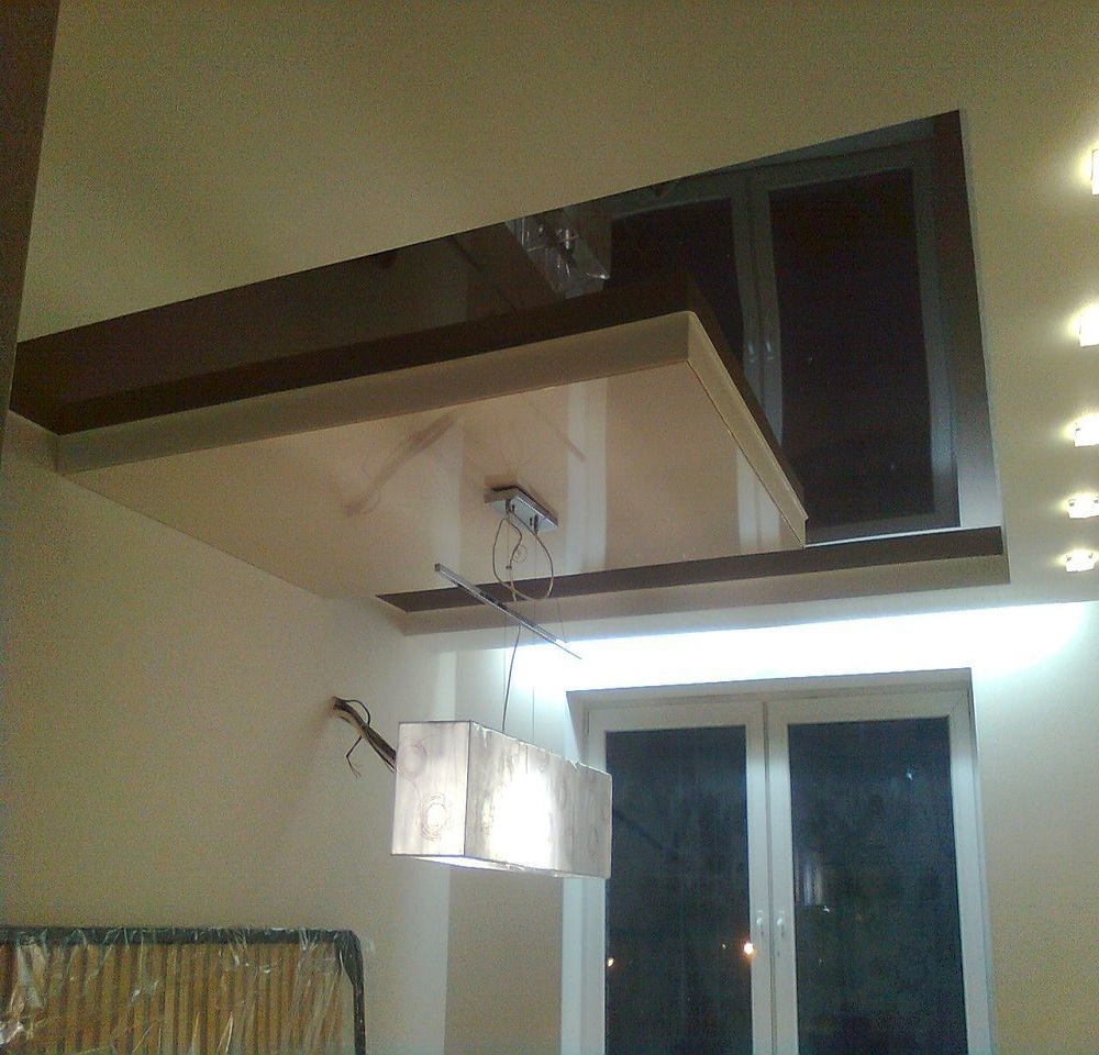 Цены на глянцевые полотна, независимо от их оттенка, одинаковы. Цена готового потолка зависит от его конфигурации, площади комнаты, количества и видов осветительных приборов, наличия дополнительного декора (прокладка светодиодной ленты, фотопечать и т. д.).